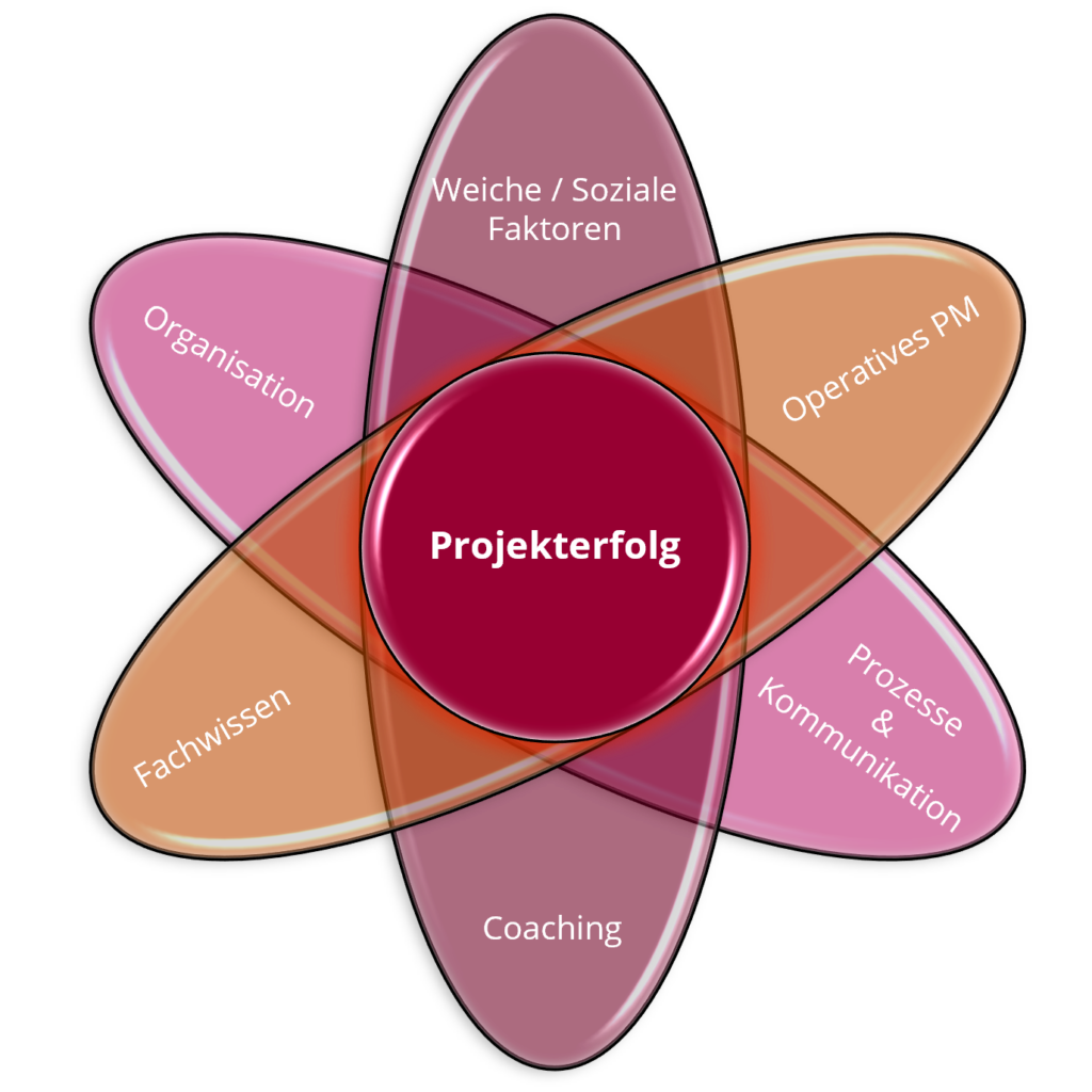Die Basis des Erfolges Ihrer Projekte ist nach unserer Überzeugung ein Dreiklang aus einer optimal funktionierenden Projektorganisation und Kommunikation, fachlich ausgezeichnetem operativen Projektmanagement sowie den weicheren sozialen Faktoren wie zum Beispiel Arbeitsklima und Motivation, denn es handeln stets Menschen. Erfolgreiches Projektmanagement entsteht im Zusammenspiel von Struktur, Fachkompetenz und Menschen. Das Projektteam muss in allen diesen Feldern möglichst gut aufgestellt sein, um ein sehr gutes Projektergebnis zu erzielen. Schwächen in einem dieser Felder erschweren oder vermindern den Projekterfolg.